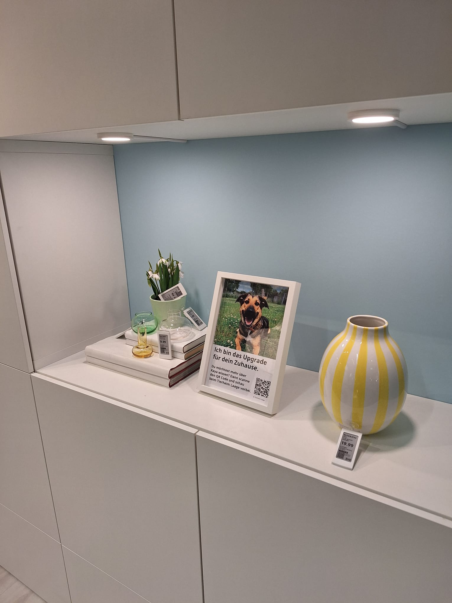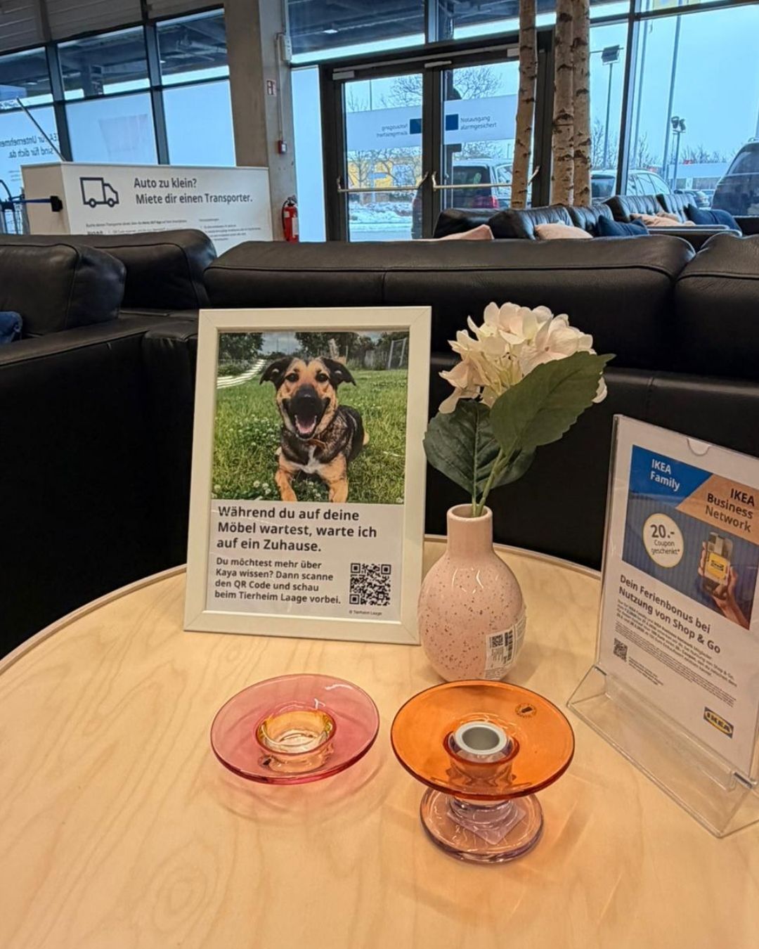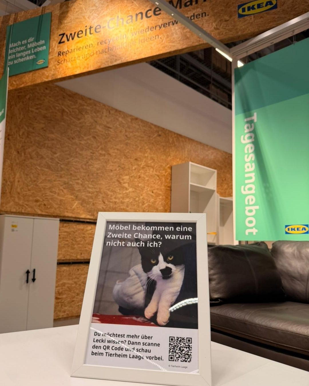 Ende letzten Jahres erreichte uns eine Nachricht von Julia vom IKEA Rostock. Sie hatte einen Beitrag vom Tierheim Duisburg gesehen, bei dem Tiere in Bilderrahmen mitten in der Möbelausstellung präsentiert wurden – sichtbar für all die Menschen, die eigentlich nur auf der Suche nach einem neuen Sofa oder einem Regal waren. Und plötzlich blieb man stehen. Nicht wegen eines Möbelstücks. Sondern wegen eines Blickes.